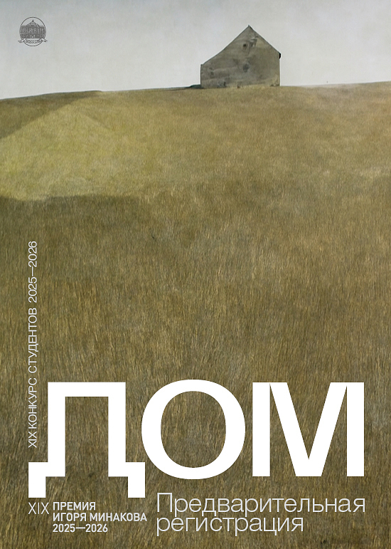 С 5 ноября на нашем сайте стартует предварительная электронная регистрация участников нового XIX-го конкурса на соискание премии Игоря Минакова. Тема конкурса — «Дом». Приглашаем к участию студентов Академии художеств имени Репина (Санкт-Петербург) и учащихся Академического Лицея имени Иогансона.